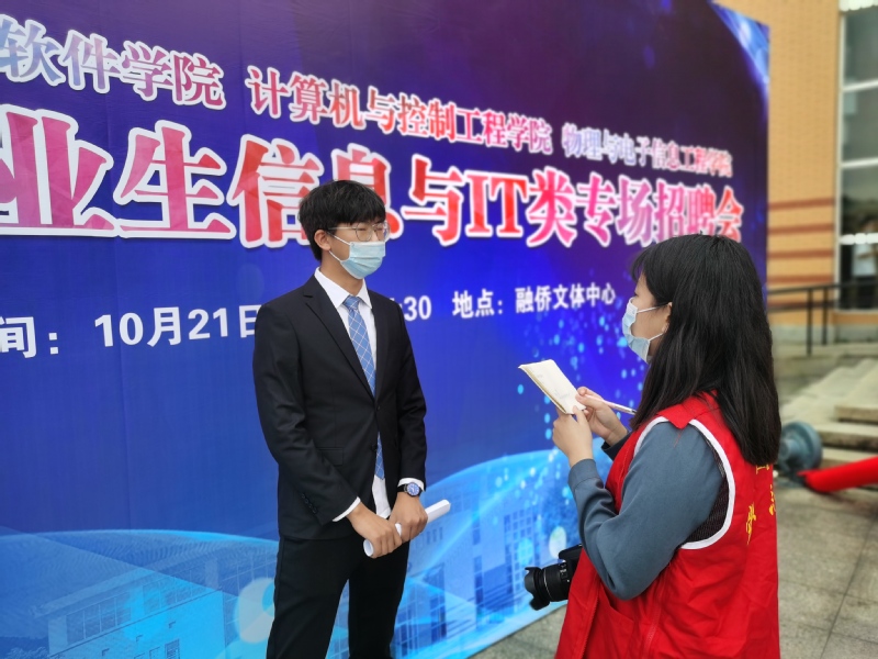 在走访中我们了解到,面对今年疫情影响下的就业压力,有些同学有些同学略显焦虑,信心不足。但是不少同学心态轻松,并表示自己做足了功课,明确了将来要工作的方向,对找到工作充满信心。来自言情小说 2017级电子信息科学与技术专业的陈一帆同学表示,自身比较期待与专业相关的岗位,这是自己的兴趣点也是特长点,希望通过今天的招聘会进一步了解相关岗位的招聘要求,最终找到较理想的岗位。