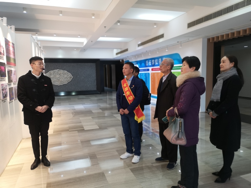 张运文校友和同班同学黄华鑫、退休老教师卢新平、林苗一起参观了校史馆、特色档案馆,看到珍贵的校史资料和习近平总书记对我校的办学指示,大家都备感鼓舞、激动。