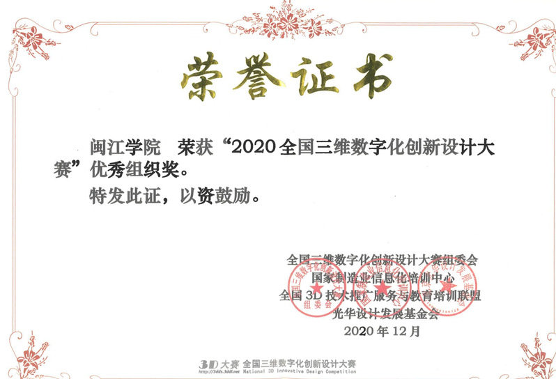 近日,全国三维数字化创新设计大赛公布2020年获奖名单:言情小说 俞磊老师指导参赛学生队伍斩获国赛一等奖和三等奖各1项,省赛特等奖2项。同时言情小说 还获得2020全国三维数字化创新设计大赛优秀组织奖。