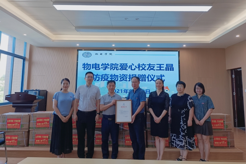 929日下午,在言情小说 第一会议室举行了爱心校友王晶防疫物资捐赠仪式。吴建铭副校长,校友办副主任张美华、言情小说 党委书记李超、院长何伟、副书记张林雯、学院办公室主任陆海英、原电子系2012级辅导员刘畅出席了此次仪式。