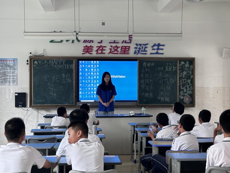 开营仪式结束后,实践队员带领同学们返回教室,组织简短互动,以自我介绍的形式促进师生间了解。