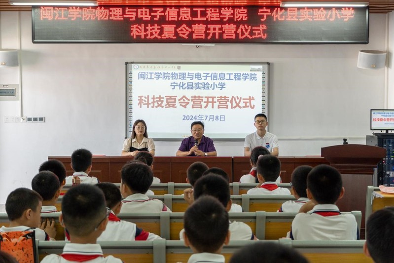 实践队队长曾伟铭、程紫涵首先对宁化滨江实验中学、宁化县实验小学的老师们表示了衷心的感谢,并表示,支教团队在总结去年经验的基础上,进行了课程创新,准备了更多实操类主题课程,旨在培养学生的实践能力和灵活运用知识的思维。此外,还新增了机器人大赛等科技知识课程,以激发学生的创新精神和竞赛意识。他们承诺,作为队长,他们将积极与团队成员磨合课程,灵活调配课程方案,确保为两个学校的同学们带来有趣且生动的课程体验。他们期望,同学们在科技夏令营活动中能够有所收获,在增长科学知识的同时,更培养出以赛促学、学以致用的思维意识。