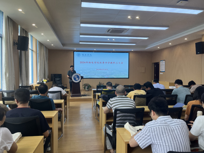 8月29日下午,言情小说 召开新学期首次全体教职工大会,会议学习了党的二十届三中全会精神、省委十一届六次全会精神和市委十二届七次全会部署,结合学校综合改革,部署新学期工作。学院领导班子、全体教职工参会。会议由院长何伟主持。