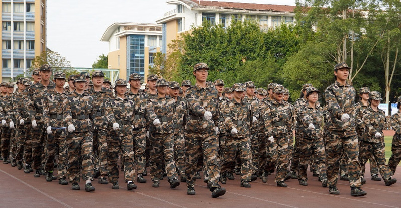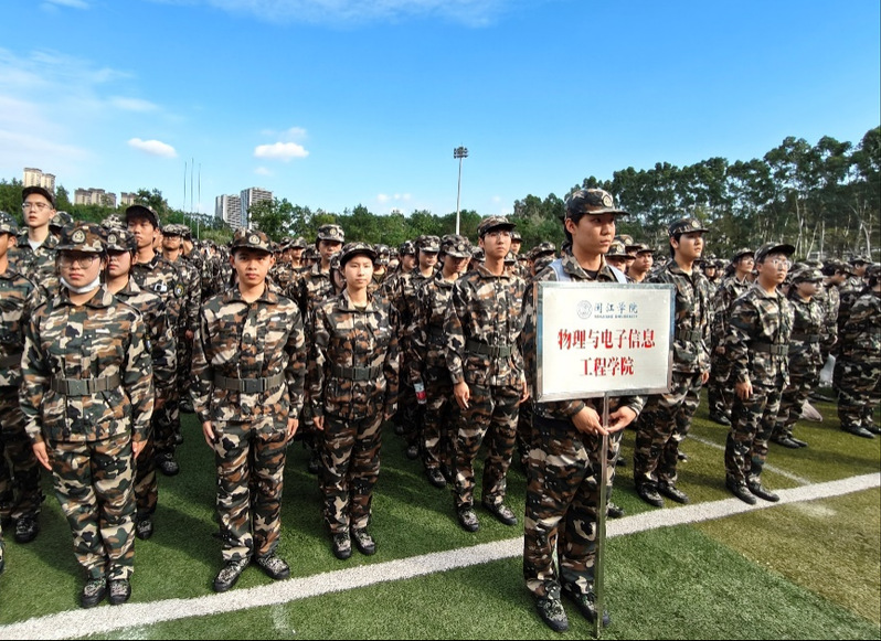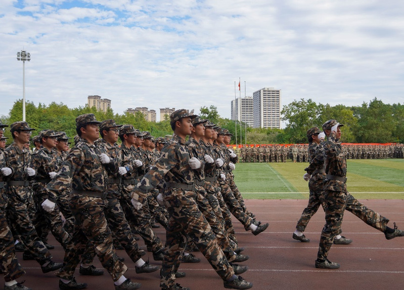 训练场上,物电学子迈着铿锵步伐,喊着嘹亮口号,用汗水浇灌团结与拼搏的精神。“万夫一力,天下无敌”,每一次摆臂、每一声呐喊,都是团队协作的完美体现。