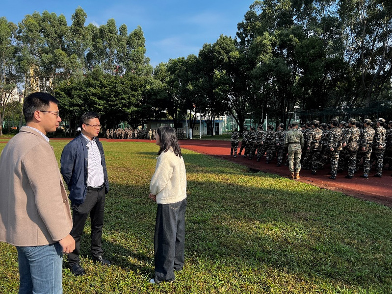 新生辅导员白洁玉全程陪伴,随时应对突发状况;志愿者团队用细致服务织就稳固的后勤保障网。正是这份无声的守护,为新生提供了安心的训练环境。