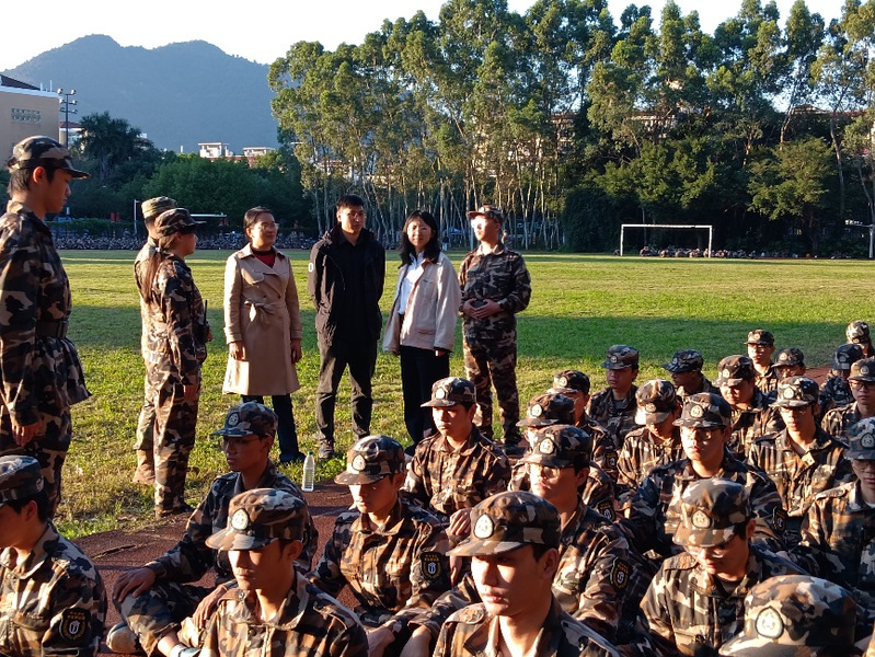 军训期间,学院党政领导班子成员多次深入训练场,为新生送上关怀与支持。他们亲切的话语,为新生们注入了坚持到底的力量,鼓舞物电新生在磨砺中成长为敢于拼搏的时代青年。