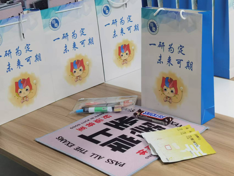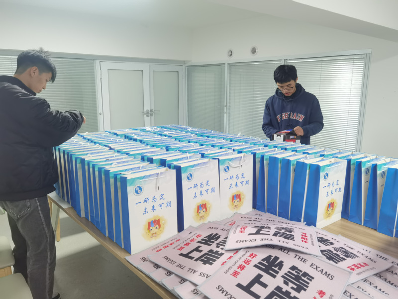 此前,慰问礼包由学生第二党支部党员志愿者协助分装,礼包内含八件套文具、暖贴、士力架、椅子垫等礼品,既实用又贴心,传递出学院对备考学子的深深祝福与美好期待。同时进一步发挥了党组织的引领作用,展现了党员学生的先锋模范作用。