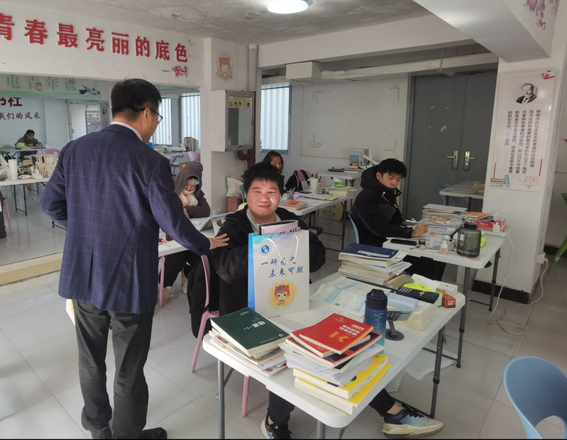 在求实社区3号楼研习室、博览社区4号楼自习室,学院领导为备考学子分发慰问礼包。学院领导们首先对同学们辛勤备考、勇于追梦的精神给予了高度评价,鼓励同学们增强信心,全力以赴,以平稳的心态迎接挑战,以必胜的信念取得成功。“进入备考冲刺,不仅仅是知识的较量,更是身体的、心理的和意志力的较量。”“有困难随时反馈,学院永远是你们坚强的后盾,愿意为大家提供一切必要的支持与帮助。”