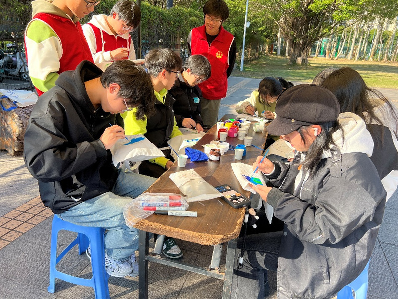 活动过程中,同学们充分展现了他们的艺术才华和环保热情。在发放的环保袋上,他们尽情挥洒创意,绘制出了一幅幅主题鲜明、充满个性的作品。环保袋上的图案不仅传达了节能减排、保护生态的理念,还体现了同学们对绿色生活的美好向往。