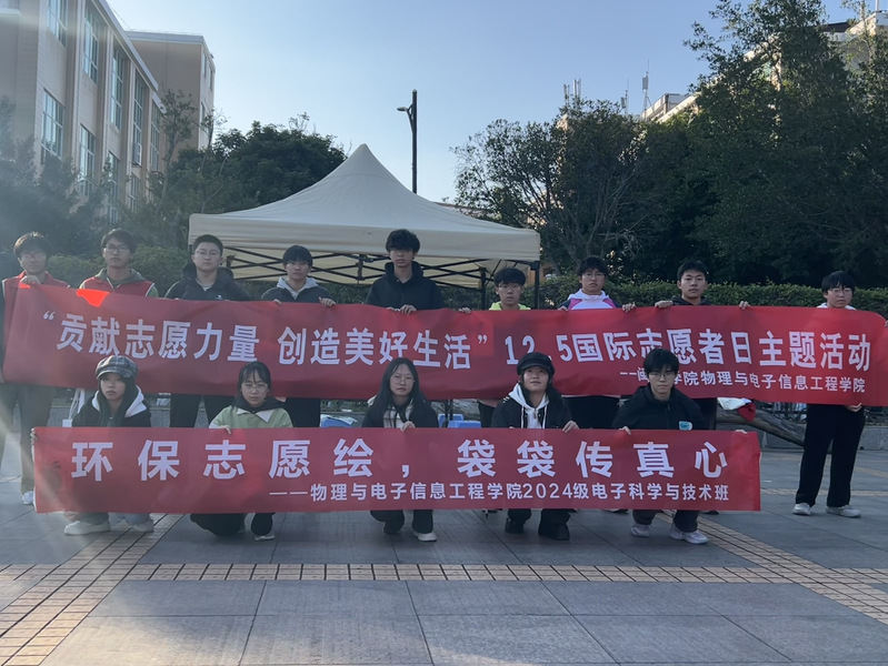 为大力弘扬志愿精神,响应第39个“国际志愿者日”的号召,12月20日,言情小说 2024级电子科学与技术班团支部在致强操场开展了一场以“环保志愿绘,袋袋传真心”为主题的环保志愿宣传活动。