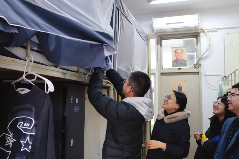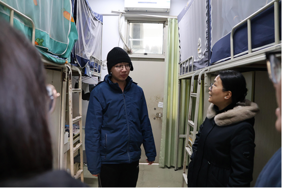 张林雯一行深入学生宿舍,与留校学生面对面交流,了解他们的生活状况以及寒假返乡情况,并详细传达学校关于假期安全和离校的有关要求。
