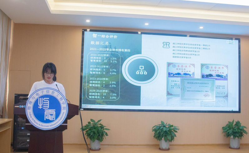 在答辩展示环节后,张林雯副书记进行总结点评。她指出,候选人在思想觉悟、专业素养、创新实践等方面展现出物电学子的精神风貌,特别是在学科竞赛中体现的创新能力、在专业实践中形成的突出成果,彰显了学院以赛促学、产教融合的育人成效。她勉励全体学生以优秀典型为镜,既要夯实专业基础,也要注重全面发展,在服务国家战略需求的实践中实现青春价值。