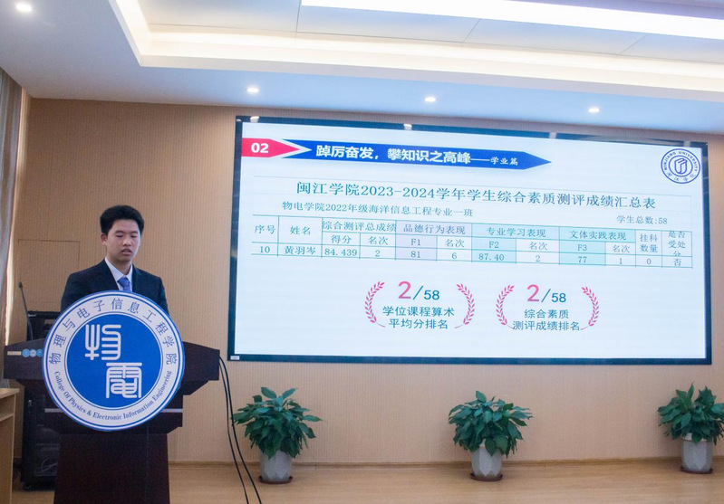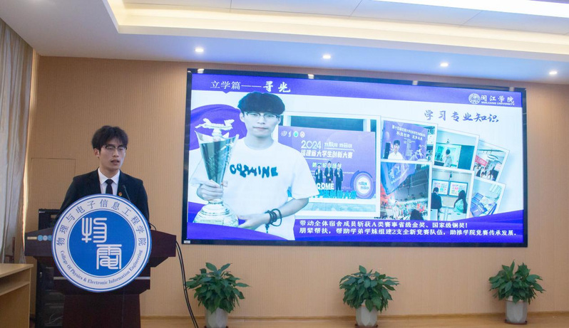 9名候选人均具有优先条件,他们依次登台,从思想建设、学业成绩、学科竞赛、社会实践、创新创业等方面进行多维度展示。