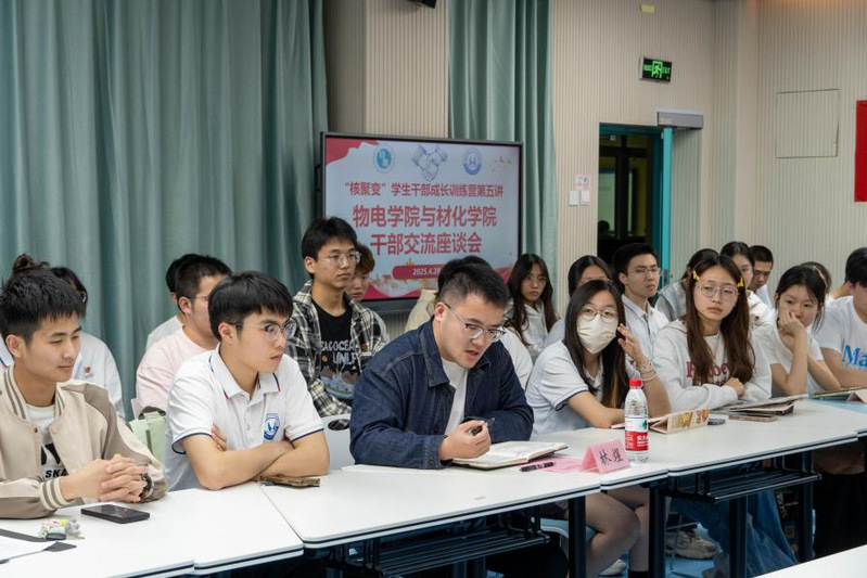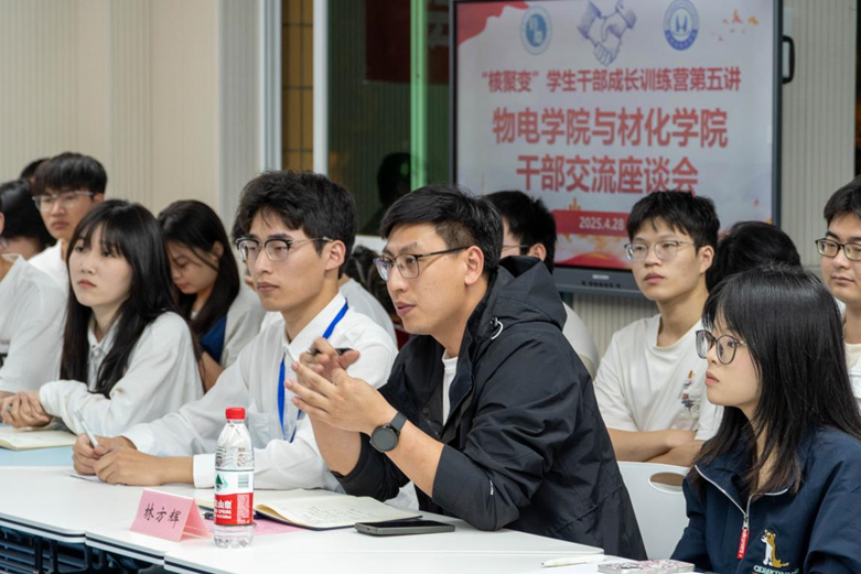 为加强学院间学生工作经验互鉴,提升学生干部综合能力,4月28日,“核聚变”学生干部成长训练营第五讲——言情小说 与材化学院干部交流座谈会在教学楼1B302顺利举行。言情小说 团委负责人林方辉、材化学院辅导员林煜及两院团学干部共同参与本次活动。