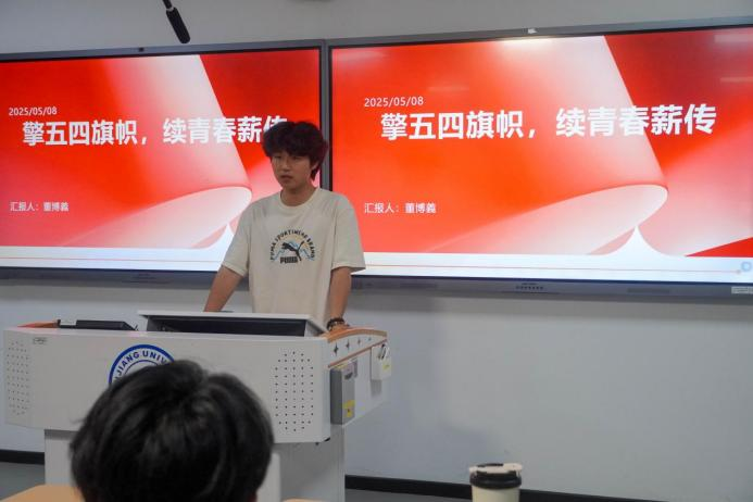5月9日,2024级电气工程及其自动化2班举办“传承五四精神,赓续青春血脉”主题团日活动。詹炜、董博義、赖瑶民三位学生代表化身宣讲员,以生动故事回溯五四青年奋斗历程,引领团员青年投身社会实践与志愿服务,将学思用贯通、知信行统一,勇担新时代青年在国家发展征程中的使命担当,让红色基因在青春传承中焕发新活力。