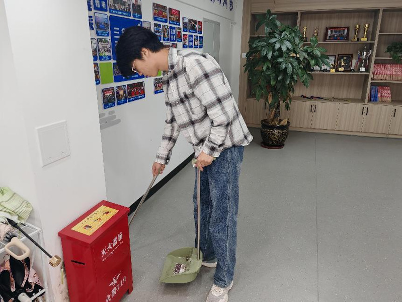 正午时分,求实社区三号楼考研自习室集结起一支护学志愿队。在勤工助学中心同学的引导下,志愿者们分为两组,携清洁工具轻步开展服务。推门而入时,大家默契放轻脚步,在勤工同学带领下有序完成清理自习室死角、规范摆放雨伞、绿植养护、帮助考研同学清除害虫等工作。通过志愿服务劳动,同学们既感受到劳动的价值,也为自习室创造了整洁舒适的学习环境。