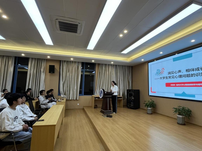 为提升大一新生班级心理委员与宿舍信息员的朋辈辅导能力,精准识别身边同学的心理问题,11月26日,言情小说 特邀福州大学心理中心主任许琳玲副教授,开展以“洞见心声,相伴成长——大学生常见心理问题识别与朋辈辅导”为主题的心理健康专题讲座,全院八十多名大一心理委员及宿舍信息员参会,讲座由学院心理辅导站负责人胡晗老师主持。