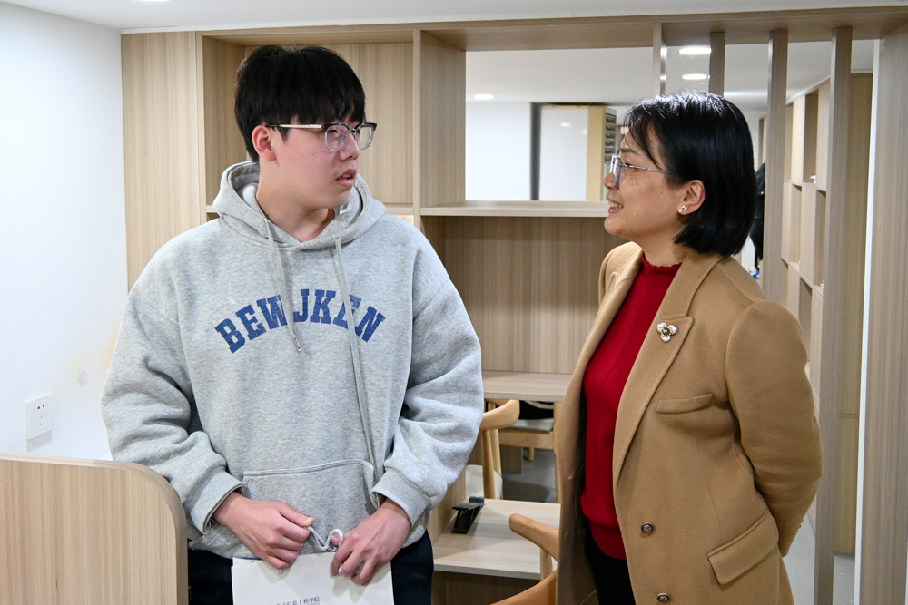 (二)在求实社区三号楼的物电研习室慰问备考学生
