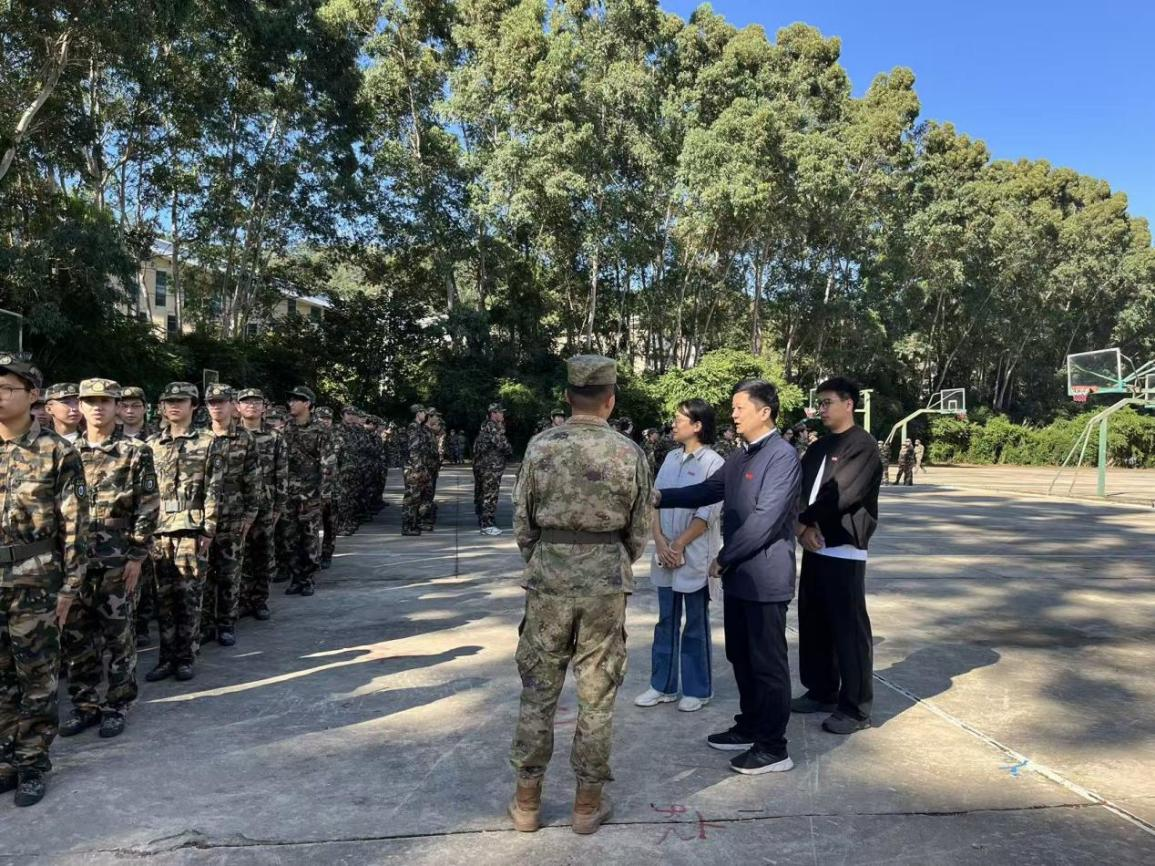军训期间,学院领导多次亲临训练现场视察指导,详细询问新生训练进度、身体状况及后勤保障情况,叮嘱教官科学施训、劳逸结合,同时与新生亲切交流,为他们加油鼓劲,让新生深切感受到学院的温暖与关怀。辅导员胡晗全程跟班值守,时刻关注新生思想动态与身体变化,及时解决新生在训练、生活中遇到的困难,成为新生最坚实的依靠。