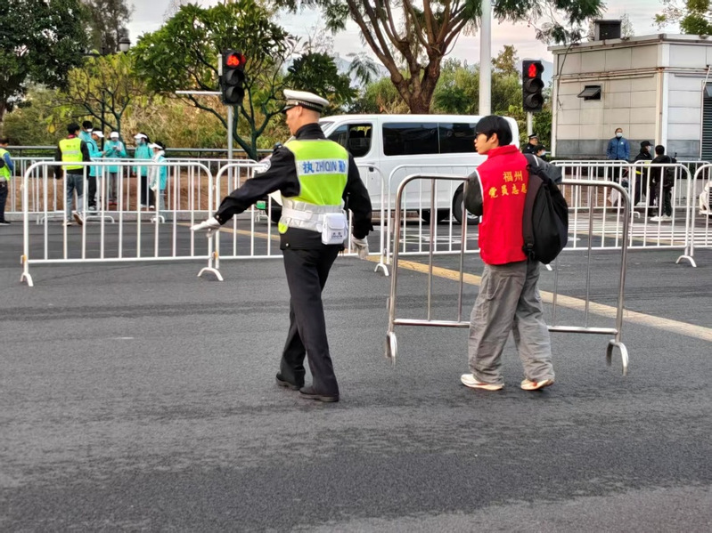 福州马拉松赛道贯穿城市多条核心主干道及重要风景人文地标,交通保障工作任务艰巨、责任重大。活动期间,志愿者团队秉持认真负责的工作作风与热情奉献的服务精神,将“有礼新风”深度融入志愿服务各环节。除协助交警开展交通指挥工作外,志愿者还主动为参赛选手加油助威,为咨询赛事信息、交通路线的市民提供细致周到的解答服务。其严谨务实的工作态度、饱满昂扬的精神面貌与文明规范的言行举止,获得了福州交警鼓楼大队相关负责人的高度评价与充分肯定,成为赛道之外一道独具特色的“志愿风景线”。