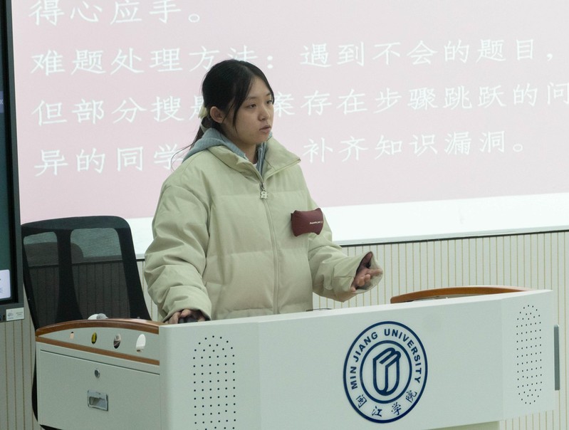 分享结束后,白洁玉老师作总结发言。她对分享嘉宾的用心准备表示感谢,并结合学院学业管理实际,寄语2025级新生端正态度、科学规划、诚信应考,在张弛有度中提升复习效率,以扎实行动迎接期末检验。