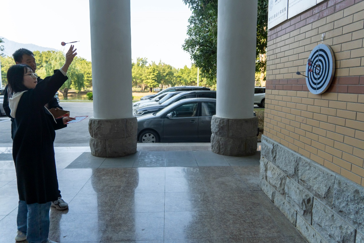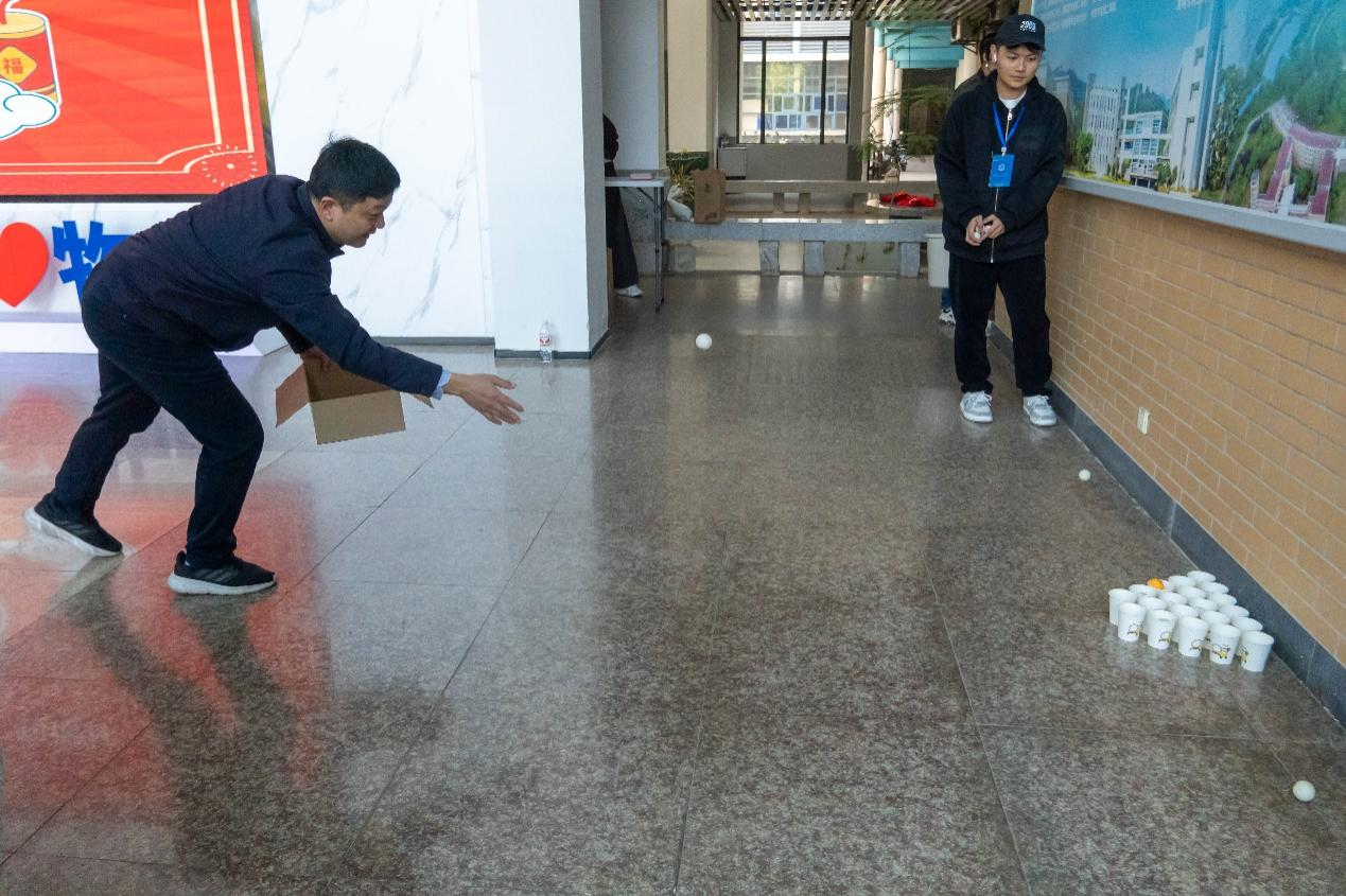 本次游园活动精心设置了乒乓球掷准、筷子夹球、飞镖大战、盲人击鼓、绘漆扇等五大趣味关卡,每个关卡都兼具娱乐性与挑战性,既考验教职工的反应能力、协调能力,又充满童真童趣。