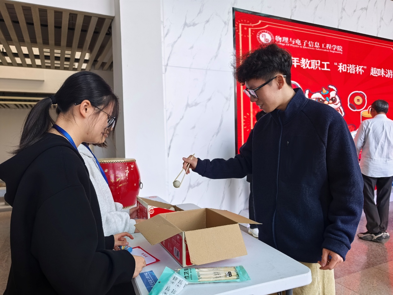 本次游园活动精心设置了乒乓球掷准、筷子夹球、飞镖大战、盲人击鼓、绘漆扇等五大趣味关卡,每个关卡都兼具娱乐性与挑战性,既考验教职工的反应能力、协调能力,又充满童真童趣。